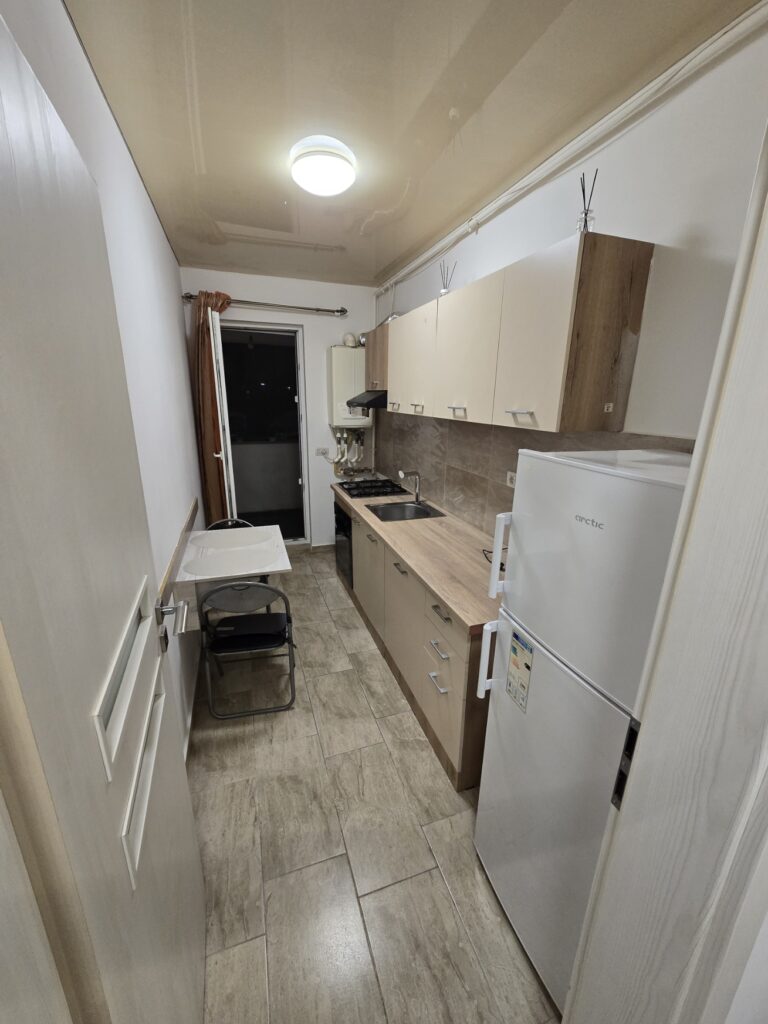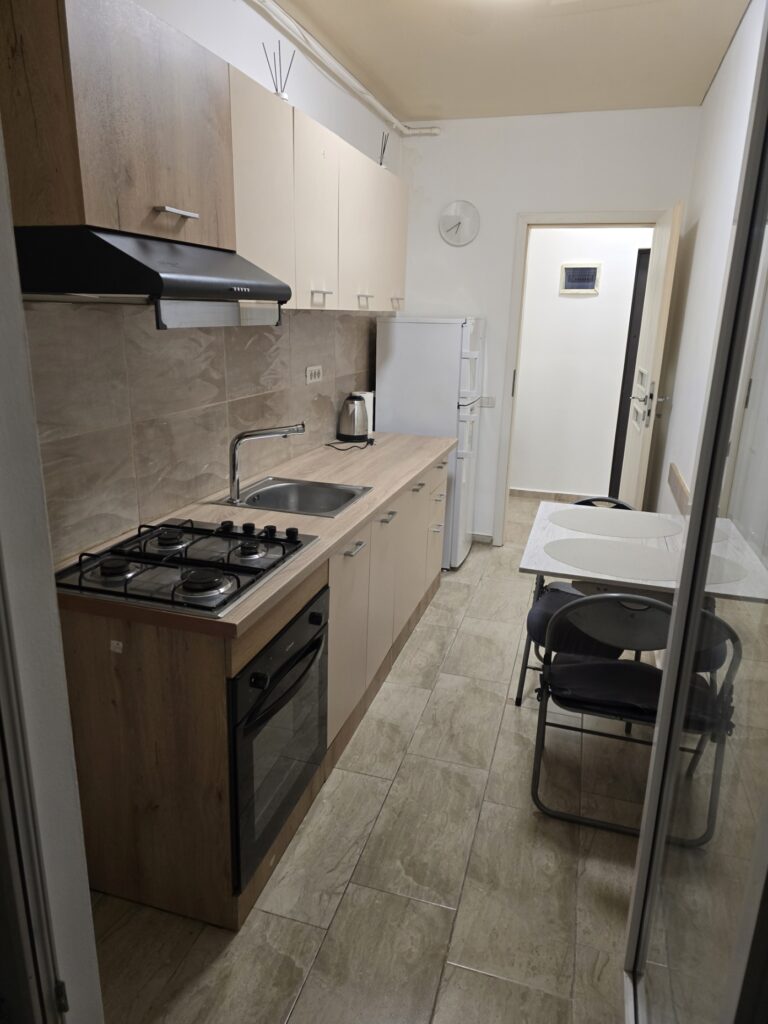 Complet mobilată și utilată: Bucătărie închisă, echipată complet (plită pe gaz, cuptor electric, hotă, combină frigorifică Arctic), zonă de luat masa.